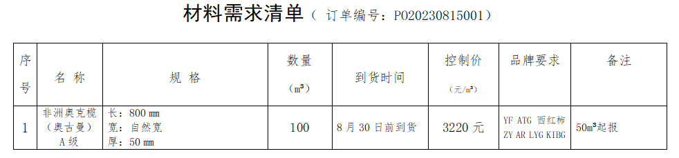 采購方式:入庫供應(yīng)商報價,此次材料入庫截止時間:2023年8月17日下午15:00時前;