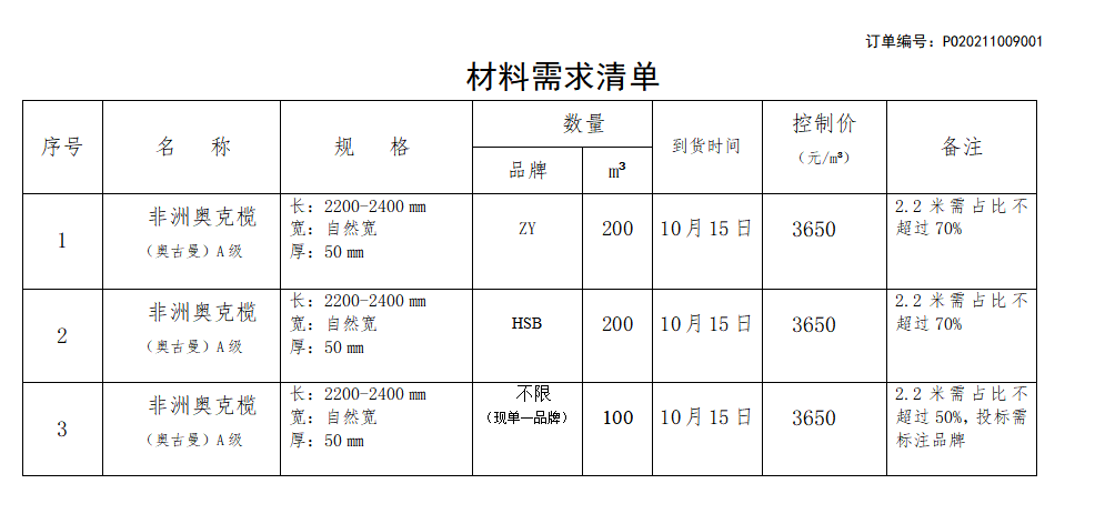 【非洲奧古曼】南康區(qū)城發(fā)集團(tuán)星冠貿(mào)易有限公司木材采購需求書
