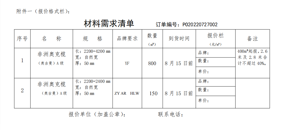【非洲奧古曼】南康區(qū)城發(fā)集團(tuán)星冠貿(mào)易有限公司采購需求書